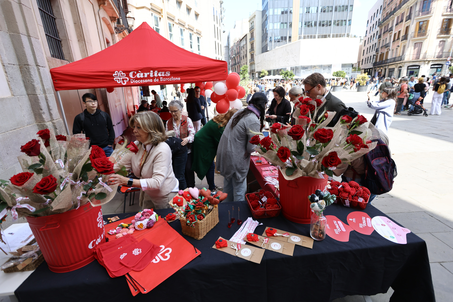 Després de dos anys de restriccions pel Covid, es recupera la Diada de Sant Jordi amb un fort aiguat i pedra a Barcelona