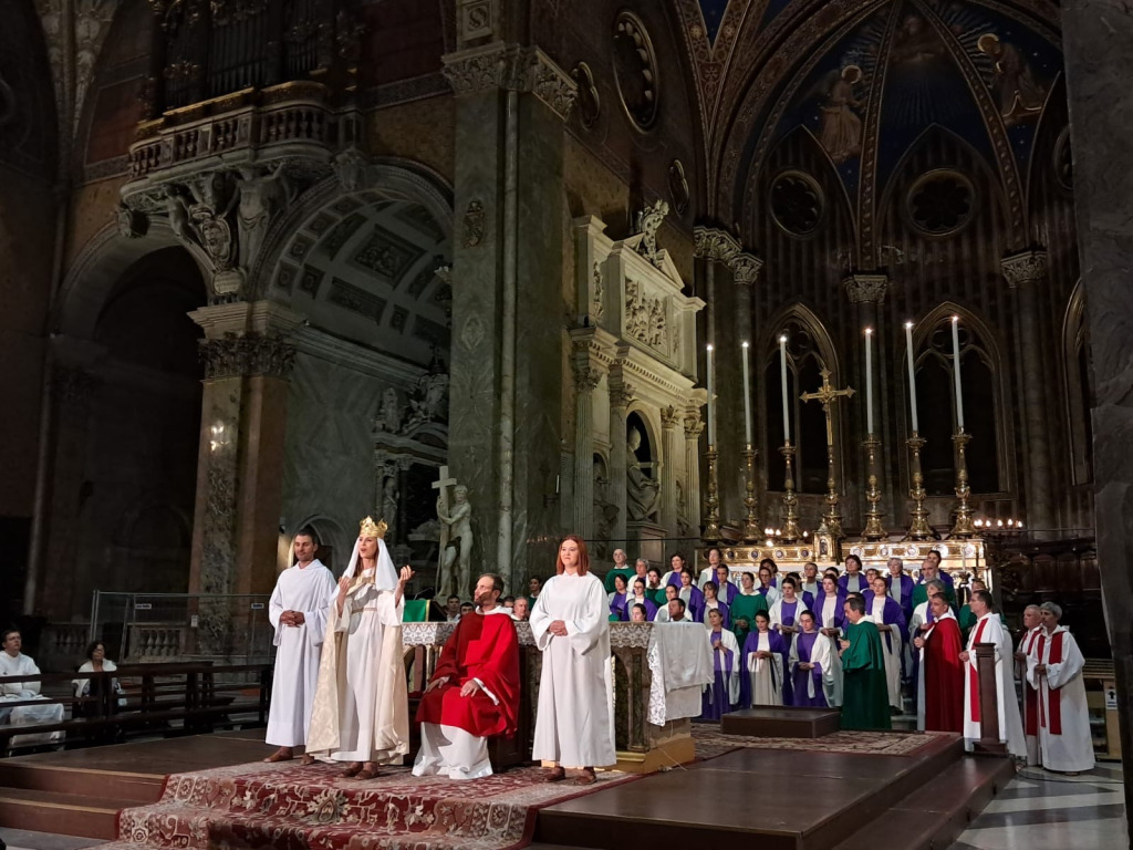 La peça assumpcionista ha aconseguit posar dempeus el públic romà i tots els selvatans que han acompanyat la comitiva del Misteri, que han pogut gaudir de la màgia de les melodies d’aquest drama escrit en català medieval. Ha estat, sens dubte, una recompensa a tots els preparatius i assajos dels darrers mesos, així com a l’adaptació que s’ha hagut de fer per poder representar-lo en un entorn únic com és la basílica gòtica de Santa Maria sopra Minerva.