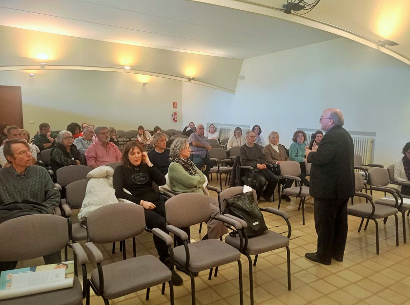 La Delegació d’Ensenyament va organitzar aquesta trobada al Seminari de Solsona, trobada que té com a objectiu que els mestres i professors de qualsevol àmbit educatiu siguin conscients del que la fe cristiana aporta al món de l’educació. El bisbe Francesc impartí la ponència Anunciar l’Evangeli en un món líquid, una ponència molt rica i interessant que la presentà en cinc grans apartats que desenvolupà de manera molt aprofundida.