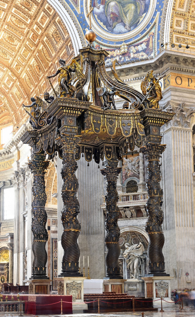 El baldaquí, una estructura imponent de bronze daurat que s’aixeca sobre l’altar major, serà sotmès a un procés de restauració de gran envergadura en preparació per al proper Jubileu 2025.