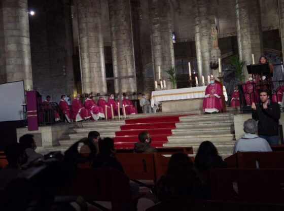 La cinquena edició de ‘Sent la creu’ ha estat una rica celebració juvenil i meditativa, amb música, testimonis, presència d’elements culturals de Veneçuela i sobretot l’Eucaristia, presidida pel cardenal Joan-Josep Omella, arquebisbe de Barcelona, i concelebrada pel mateix cardenal Balthazar Porras, arquebisbe de Mérida (Veneçuela) i administrador apostòlic de Caracas, els també bisbes veneçolans Raúl Biord Castillo, titular de la diòcesi de La Guaira, i Tomás-Jesús Zárraga, retirat des de fa uns anys a la Cartoixa de Tiana (Maresme), a més dels auxiliars de Barcelona Sergi Gordo, Toni Vadell i Xavier Vilanova. “La creu és la nostra única esperança”, ha dit Omella a l’inici, ja amb la imatge al presbiteri, a l’esquerra de l’altar. A partir d’aquí, s’ha desenvolupat tota la litúrgia combinada amb missatges de proximitat amb “el sofriment del poble veneçolà, però també de les Filipines, del Senegal, de l’Iraq i de moltes altres nacions”, com ha recordat l’arquebisbe de Barcelona. Al final, un dels joves presentadors va convocar tothom a la sisena edició de l’activitat, que serà el 6 de març de 2022, també primer diumenge de Quaresma.
