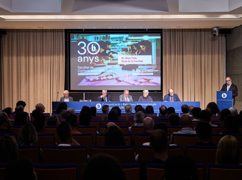 La Facultat de Comunicació i Relacions Internacionals Blanquerna va celebrar divendres passat el seu 30è aniversari amb un acte institucional i una festa que van reunir tota la comunitat universitària: estudiants actuals, alumni, professorat, personal administratiu i autoritats acadèmiques, així com representants institucionals. L’acte, celebrat a l’auditori de la Facultat, va ser presentat pel degà actual, Dr. Marc Polo, que va donar la benvinguda als assistents i va recordar els orígens de la Facultat: «La comunicació —i, des de fa 12 anys, les relacions internacionals— han estat claus per entendre i transformar el món. Volíem formar persones capaces de fer-ho amb rigor, compromís i sensibilitat».
