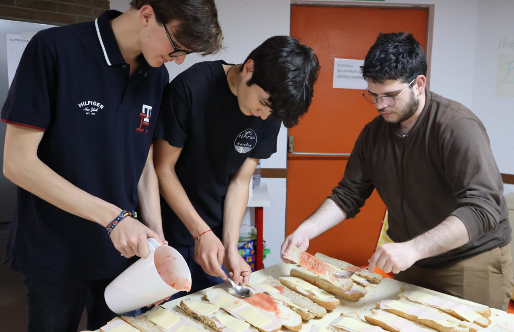 Primer, els joves del Casal Loiola s’organitzen per comprar els ingredients necessaris per fer els entrepans: embotits, formatge, vegetals, entre d’altres. El pa el recullen dels forns de pa de la zona, que, coneixent el seu voluntariat, els guarden les barres que sobren. Després, es reuneixen al centre i es divideixen les tasques: uns s’encarreguen de tallar els ingredients, altres de fer els entrepans i, finalment, s’empaqueten i es guarden dins bosses per a la distribució. També preparen sucs (durant l’estiu) i brou (a l’hivern).
