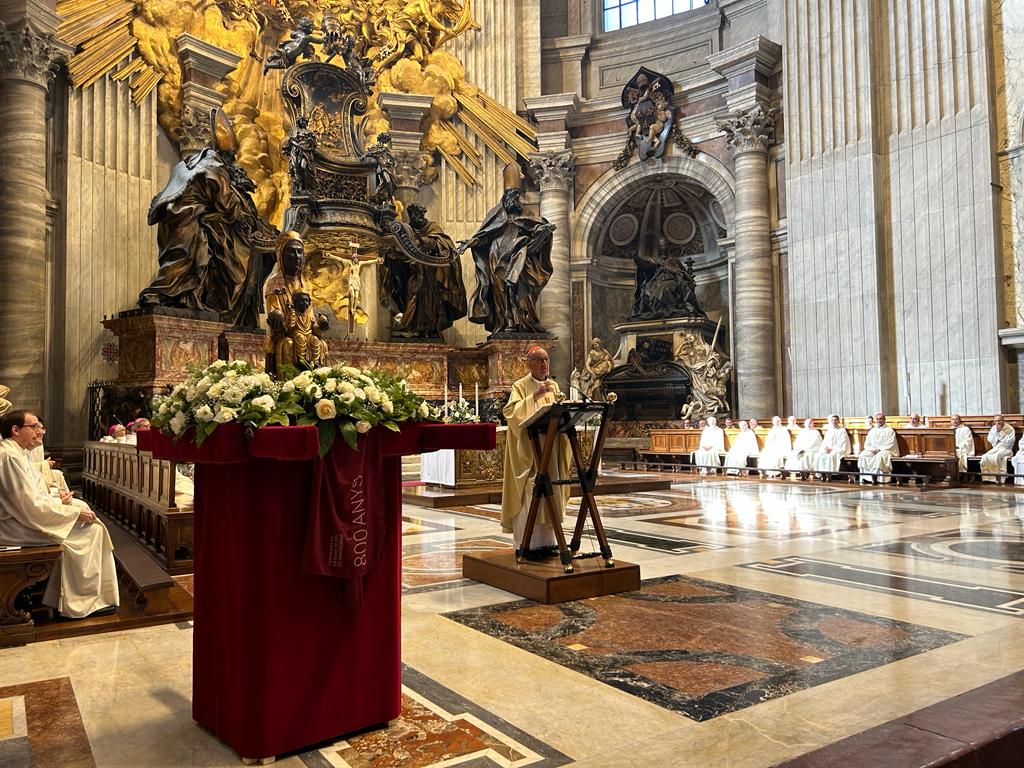 L’Eucaristia ha estat precedida d’una processó d’entrada des de la plaça fins a la Càtedra de Sant Pere portant la imatge de la Mare de Déu de Montserrat, que el Papa va beneir i la va condecorar amb la Rosa d’Or. “La millor rosa d’or és la fe que portem a les nostres diòcesis, parròquies i comunitats. Tornem als nostres llocs i manifestem la joia de la fe”, ha dit Omella.