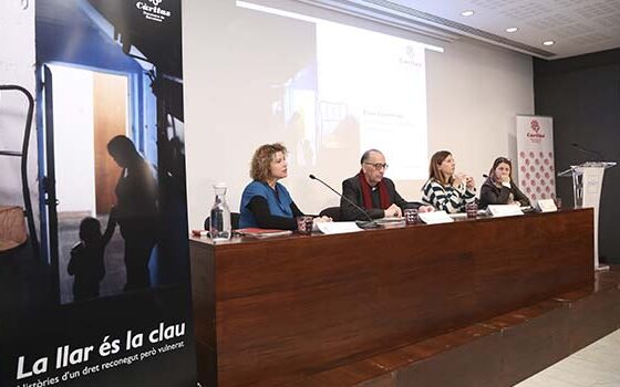 Míriam Feu, responsable d’Anàlisi Social i Incidència de Càritas diocesana de Barcelona, ha estat l’encarregada d’obrir l’acte amb la lectura d’un l’informe fet per la mateixa entitat, i en el qual s’adverteix que més del 36% de la població de Barcelona viu en dificultats relacionades amb l’exclusió residencial. En aquesta mateixa direcció, Laia Ortiz, directora de l’Àrea de Drets Socials a la ciutat, ha recordat que “l’habitatge ja no és un problema dels països del sud, sinó que ha esdevingut un repte per a totes les ciutats europees, especialment a Barcelona”.