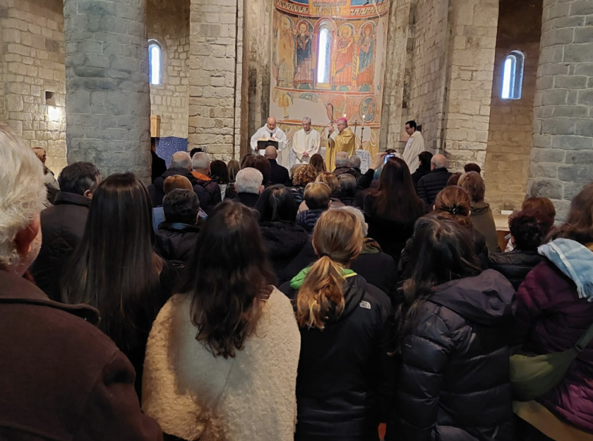El moment àlgid de la commemoració dels 900 anys de la Consagració dels temples de Taüll (Santa Maria i Sant Climent) ha tingut lloc aquest diumenge 10 de desembre, amb la celebració eucarística a l’església romànica de Santa Maria. La missa, presidida per l’arquebisbe d’Urgell i copríncep d’Andorra, Mons. Joan-Enric Vives, ha aplegat un gran nombre d’autoritats locals, així com els veïns i fidels del territori, que han volgut formar part del que ha significat la cloenda de les activitats organitzades al llarg de l’any 2023 per la parròquia amb motiu de l’efemèride.