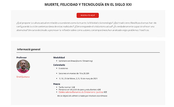 Tots els detalls dels cursos es poden trobar a www.cristianismeijusticia.net