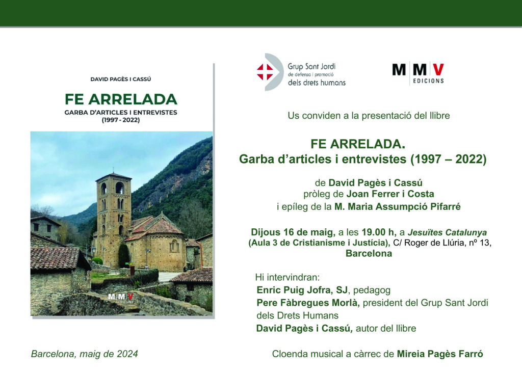 Publicat per Edicions MMV, David Pagès presenta “amb aquesta garba d’escrits, aquest entrellaçament”, entre fe i país, “que significa també reforçament recíproc, entre dos pilars que han estat bàsics per a la vertebració del nostre poble, de la seva identitat: catalanitat i cristiandat”.