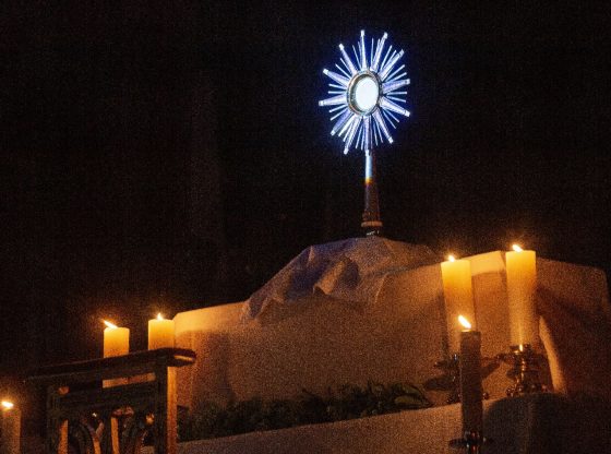 Cert que l’adoració eucarística, sobretot la de temps llargs o la perpètua, es fa de vegades amb poques persones –per exemple, quan té lloc en plena nit. De fet, es compleix, aquí d’una manera sacramental, aquella paraula de Jesús que diu: “On n’hi dos o tres de reunits en el meu nom, jo soc allí enmig d’ells” (Mateu 18,20). Igualment, es compleix la promesa del Kyrios ressuscitat: “Jo soc amb vosaltres dia rere dia fins a la fi del món” (28,20). Aquestes dues paraules de Jesús s’adrecen a tota l’Església, i la comunitat les rep sabent que la pregària d’un és la pregària de tots, i que la presència sacramental s’escampa envers les altres presències de Jesús, sobretot les que es realitzen amb la Paraula i els pobres: Jesús, la Paraula del Pare, és el Fill que “intercedeix per nosaltres” (Romans 8,34), i els pobres són la carn real del Senyor que “es va fer pobre” per tots (Segona carta als Corintis 8,9). Aquesta connexió entre la taula de l’Eucaristia, la taula de la Paraula i la taula dels pobres mai no hauria de faltar en una adoració eucarística. Està bé fer silenci d’adoració i de pregària personal, però l’adoració ha de ser un acte de devoció plenament eclesial en el qual hi ressoni la Paraula i aquesta nodreixi els qui adoren la Santa Trinitat “en Esperit i en veritat” (Joan 4,23). Per tant, trencar el silenci amb l’escolta de la Paraula i fer memòria viva dels petits del Regne, conjuntament amb altres intencions, durant l’adoració eucarística, és emmarcar aquesta adoració en allò que la configura: el marc comunitari, el batec eclesial, augmentat per la presència real de Jesús.