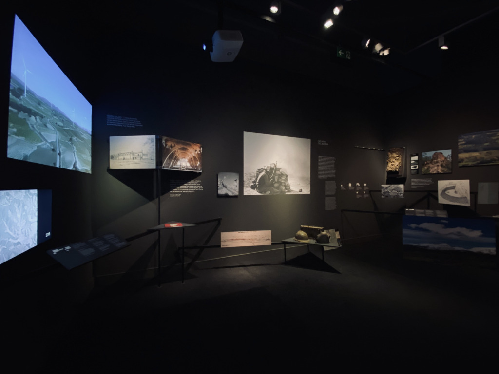 L’exposició està organitzada en tres àmbits. El primer és descriptiu de la gran diversitat paisatgística i se centra en set paisatges on les construccions de pedra seca en formen part intrínseca i notable. Destaquem, entre altres, l’altiplà de la Terra Alta, les Garrigues Baixes o la Vall del Corb.