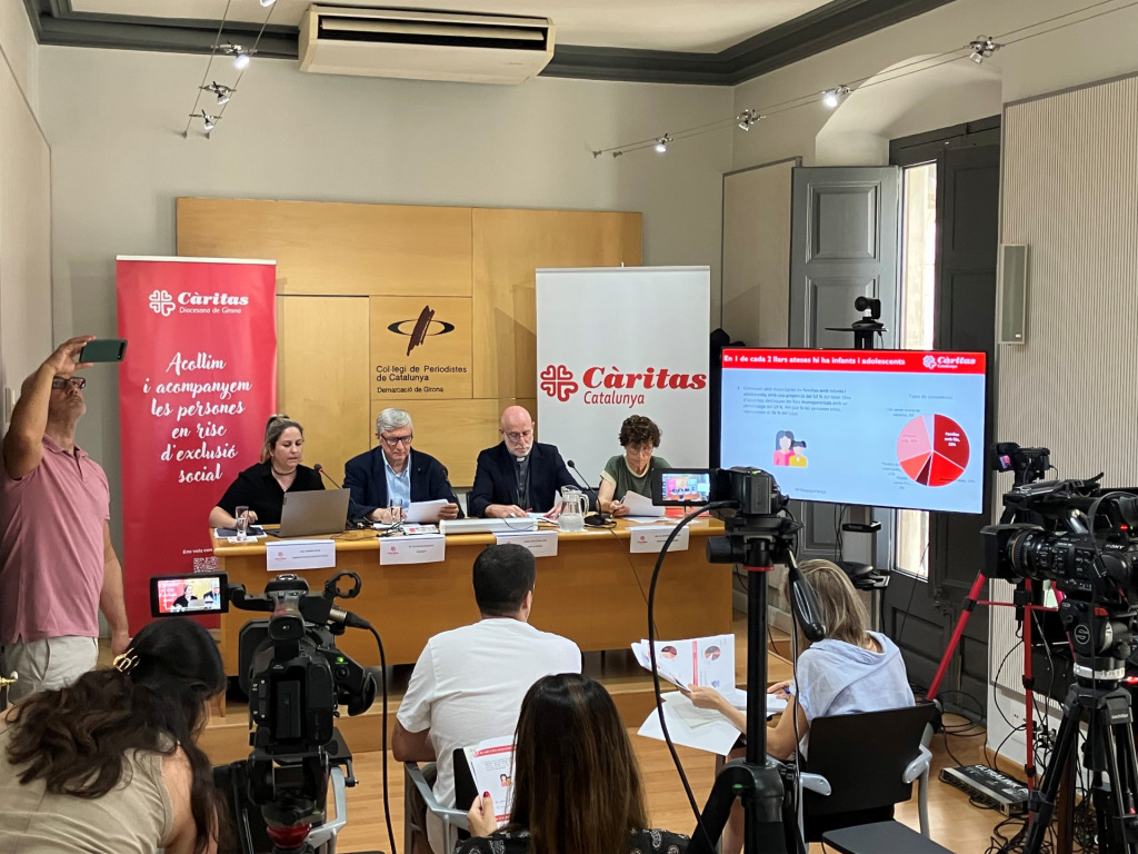 La roda de premsa de presentació de la memòria s’ha fet al Col·legi de Periodistes de Girona. Foto: Càritas Catalunya
