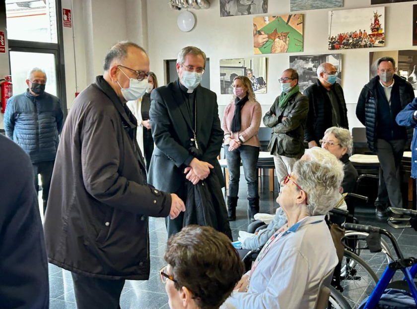 La visita ha començat a la capella de la Residència de gent gran i ha continuat a la sala d’activitats i a altres espais de la Residència. El Cardenal i el Bisbe han compartit una estona amb persones residents i han conegut les característiques del centre.