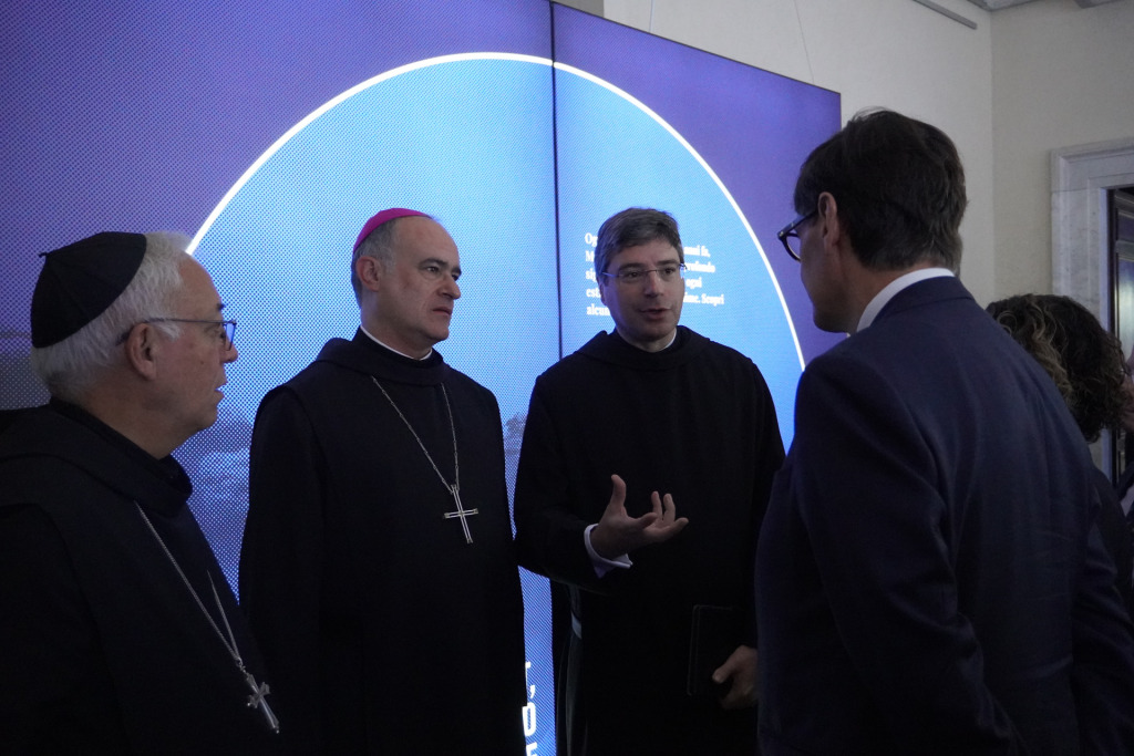 El pare Bernat Juliol i Galí, comissari del Mil·lenari de Montserrat, ha inaugurat l’exposició acompanyat del president de la Generalitat de Catalunya, Salvador Illa, i l’abat de Montserrat, el pare Manel Gasch i Hurios.