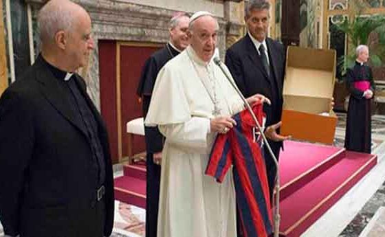 El Papa ha expressat el seu profund agraïment per aquest gest concret de proximitat als qui estan patint en aquests moments pel sisme. Els ha regalat samarreta antiga de l’equip argentí i un escut artístic de la Roma. Els jugadors del club romà, per la seva banda, han lliurat al pontífex una samarreta commemorativa de l’Any de la Misericòrdia, amb un dorsal número 1 i el nom de Francesc. Després, el Sant Pare ha saludat un per un els futbolistes, amb els quals ha intercanviat algunes paraules. Precisament el tuit del Papa parla aquest divendres de la caritat i la proximitat als més necessitats: “Caritat significa fer-se proper a les perifèries dels homes i les dones que ens trobem cada dia”.