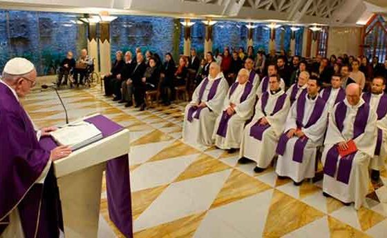 El pontífex ha afirmat que això de “dir i no fer és un engany”. Les paraules d’Isaïes, segons ha subratllat, indiquen què és allò que Déu prefereix, que és “deixar de fer el mal i aprendre a fer el bé”. Francesc ha dit que “la misericòrdia del Senyor va a l’encontre d’aquells que estan disposats a discutir amb ell, en una dialèctica que acabi amb el fer la voluntat de Déu”. El Sant Pare s’ha referit al capítol de l’Evangeli de Mateu sobre el judici final, quan Déu demanarà comptes a l’home sobre “allò que haurà fet a famolencs, assedegats, empresonats i estrangers”. Francesc ha assegurat que “aquesta és la vida cristiana, mentre que allò que simplement és dir ens porta a la vanitat, a semblar cristià sense ser-ho”. I ha conclòs expressant el seu desig que “el Senyor ens doni la saviesa per entendre bé on és la diferència entre el dir i el fer, i ens porti pel camí del fer”. Finalment el Papa ha recordat que són molts els cristians que simulen ser-ho, els qui fan de la pertinença a l’Església un element decoratiu, una ocasió de prestigi en lloc d’una experiència de servei cap als més pobres.