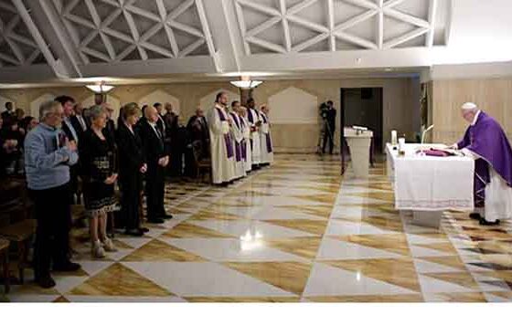El Pontífex ha desenvolupat la seva meditació al voltant de la figura d’Abraham, presentada per la litúrgia del dia. Del considerat Pare comú en la fe, el pontífex ha destacat que “confia en Déu i obeeix quan és cridat a anar-se’n a una altra terra” que hauria rebut en herència. En aquest línia, ha comentat que Abraham, ” després d’haver tingut el fill i que se li demanés el seu sacrifici, va endavant i, quan Jesús diu que Abraham va veure el seu dia, va veure Jesús i va estar ple d’alegria”. Finalment Francesc ha recordat que el pacte, per part d’Abraham, consisteix a “haver obeït sempre”. Per traslladar aquest missatge al moment actual, el bisbe de Roma ha explicat que “l’Església és un poble que ha donat un pare a la Terra que va obeir”. També ha destacat que ara tenim un germà que ha donat la seva vida per nosaltres, per fer-nos poble.