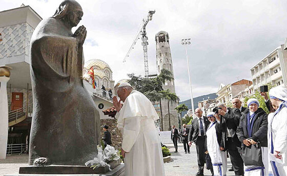 Abans de la seva trobada amb els sacerdots bizantins, el Papa va aprofitar per saludar les autoritats del país, la societat civil i el cos diplomàtic al Palau Presidencial i, posteriorment, va visitar la Casa Memorial dedicada a santa Teresa de Calcuta. Allí hi va realitzar un homenatge floral davant l’estàtua de la santa missionera i, acompanyat per la mare superiora i altres religioses, va resar pels pobres i per tots els necessitats: «Et demanem, santa Mare Teresa, mare dels pobres, la teva especial intercessió i ajuda aquí, a la ciutat del teu naixement, on tenies la casa. Aquí vas sentir les primeres paraules de fe amb la teva família i vas aprendre a estimar els més necessitats i ajudar-los.»