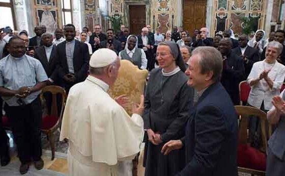 D’altra banda, el Papa ha rebut aquest mateix dilluns, a la Sala Clementina del Vaticà, els participants en el Capítol General dels Missioners i Missioneres de la Consolata. Els ha demanat que “continuïn el seu camí amb esperança”. Francesc ha expressat el seu desig que “la consagració missionera d’aquests religiosos pugui ser sempre una font de trobada vivificant i santificant amb Jesús i amb el seu amor, font de consolació, de pau i de salvació per a tots els homes”. En el seu discurs, el Sant Pare ha saludat els membres de la branca femenina i masculina de la Família Religiosa fundada el 1901 pel Beat Josep Allamano, en ocasió dels seus respectius Capítols Generals. També ha recordat, en la salutació, “els germans i les germanes que treballen, moltes vegades en condicions difícils, en els diversos continents”, i els ha animat a “seguir amb generosa fidelitat en el seu compromís missioner ad gentes“.