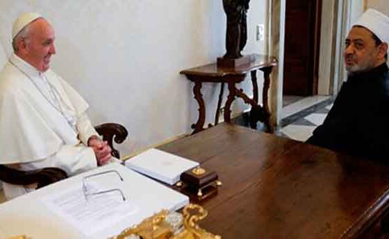 Francesc s’ha abraçat aquest dilluns, al Vaticà, amb el Gran Imam d’Al Azhar, la cèlebre universitat sunnita del Caire. La reunió es considera un important esdeveniment dins el procés de diàleg entre el cristianisme i l’Islam, després que el màxim representant d’aquesta branca musulmana trenqués relacions amb la Santa Seu l’any 2011 quan Benet XVI va demanar als sunnites protecció sobre la minoria cristiana arran d’un atemptat. El compromís comú de cristians i musulmans per la pau i contra la violència, la guerra i el terrorisme són el tema de fons d’una audiència històrica. Ha estat una trobada, al Palau Apostòlic, del pontífex amb el Gran Imam d’Al-Azhar, Ahmad Muhammad Al-Tayyib, acompanyat per una important delegació. El Gran Imam ha estat acollit i acompanyat a la trobada amb el Sant Pare pel president del Pontifici Consell per al Diàleg Interreligiós, el cardenal Jean-Louis Tauran, i pel secretari del mateix Dicasteri, Miguel Ángel Ayuso Guixot. La conversa, en un to molt cordial, ha durat aproximadament mitja hora.
