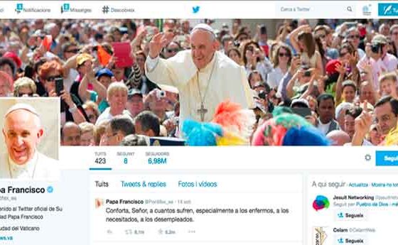 Els comptes oficials del papa Francesc a la xarxa social Twitter han superat els 16 milions de seguidors, dels quals gairebé 7 milions són de parla hispana i reben actualitzacions, reflexions i missatges del Bisbe de Roma a través del compte @Pontixex_es.