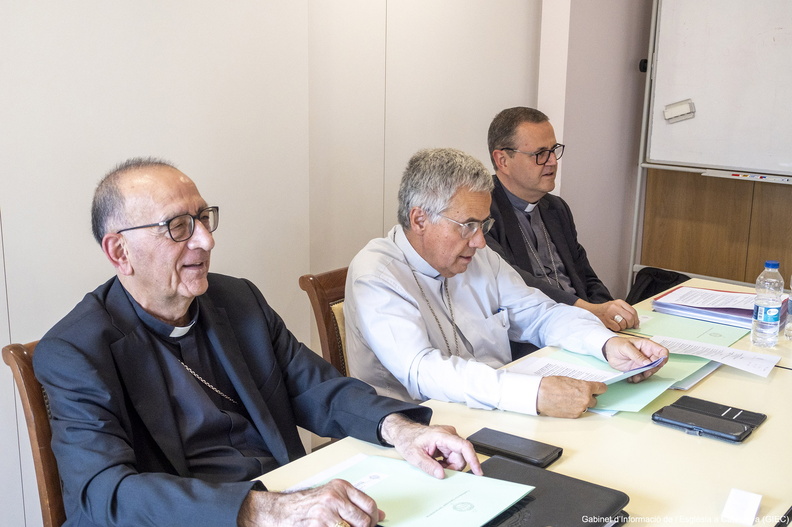 Mn. Joan Àguila, director del Secretariat Interdiocesà de Catequesi, i el seu tresorer, Mn. Alberto Para, han informat als bisbes sobre les activitats i els projectes que tenen en el camp catequètic, sobretot en l’edició dels catecismes i els materials catequètics que els acompanyen.