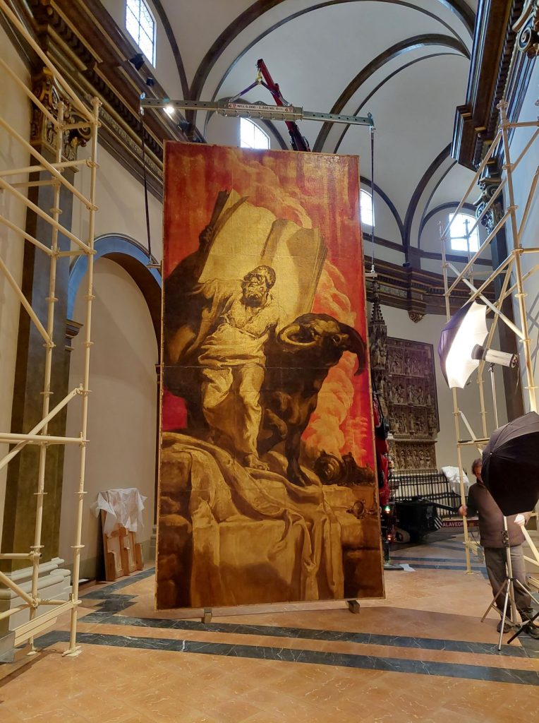 En el marc de l’exposició temporal Sert en flames, l’any 2021 les teles dels quatre evangelistes es van exhibir a la nau central d’aquesta església. Finalment, ara han estat instal·lades al deambulatori de la catedral, amb la voluntat que hi siguin exposades de manera permanent.