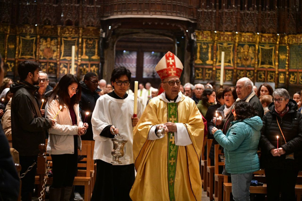 L’eucaristia, emmarcada també per la festa de la Candelera, ha començat amb el temple il·luminat per les candeles que sostenien consagrats, consagrades i fidels, recordant la Presentació de Jesús al temple.