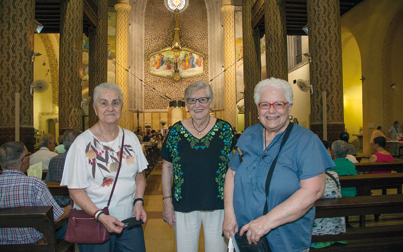 Les teresianes Ana Cipriano, Viqui Molins i Pilar Rodríguez, a l’església de la Mare de Déu del Carme de Barcelona, el juliol del 2022.