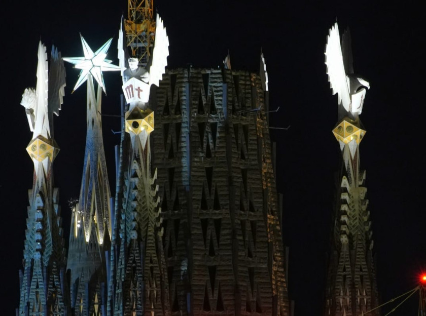 La llum de les torres dels evangelistes s’afegeix a la de l’estel de Maria, que es va beneir i il·luminar el 8 de desembre del 2021. Una nova fita, doncs, per a la Sagrada Família, que ja té enllestides tretze del total de divuit torres.