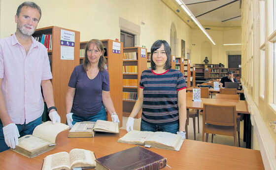 Hi abunden els seus bibliotecaris: Daniel Gil, Imma Guzmán i Helena Fàbregas. «Pots apadrinar la totalitat de la restauració o només una part. Plantegem una aportació mínima de 50 euros, i l’apadrinament està obert tant a particulars com a empreses. El padrí o padrina rebrà un certificat personalitzat i un obsequi d’agraïment. També el convidarem a veure el resultat final de la restauració. A més, el llibre inclourà informació de l’any de restauració i de les persones que hi han col·laborat. Finalment, a la web figurarà la llista de padrins i padrines».
