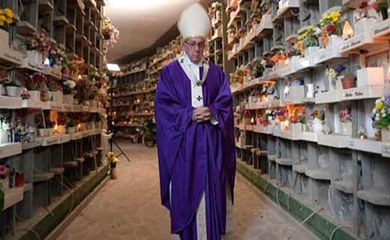 Abans de dirigir-se a la tarda al cementiri romà de Prima Porta per celebrar la Missa en commemoració de tots els Fidels Difunts, ha invitat tothom a través d’un tweet a aturar-nos “amb fe davant les tombes dels nostres éssers estimats, resant també pels difunts que ningú recorda”. Aquest mateix dimecres a la tarda, en finalitzar la celebració al cementiri de Prima Porta, el Sant Pare s’ha desplaçat a les Grutes Vaticanes, on ha viscut, de manera privada, un moment de pregària pels pontífexs difunts.
