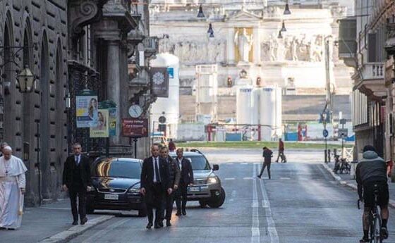 Aquest diumenge, el Papa ha sortit del Vaticà per visitar la basílica de Santa Maria la Major per pregar davant la icona de la Mare de Déu Salus Populi Romani. Després ha anat, a peu, per la Via del Corso fins a l’església de San Marcello al Corso, on hi ha el Sant Crist miraculós que el 1522 va ser dut en processó pels barris de la ciutat per posar fi a la “Gran Pesta” a Roma.