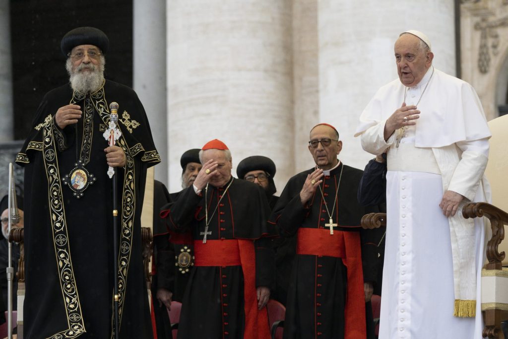 El papa Francesc ha estat acompanyat, a l’audiència general setmanal dels dimecres, pel patriarca Teodor II, líder de l’Església ortodoxa copta, per a una salutació especial als fidels.