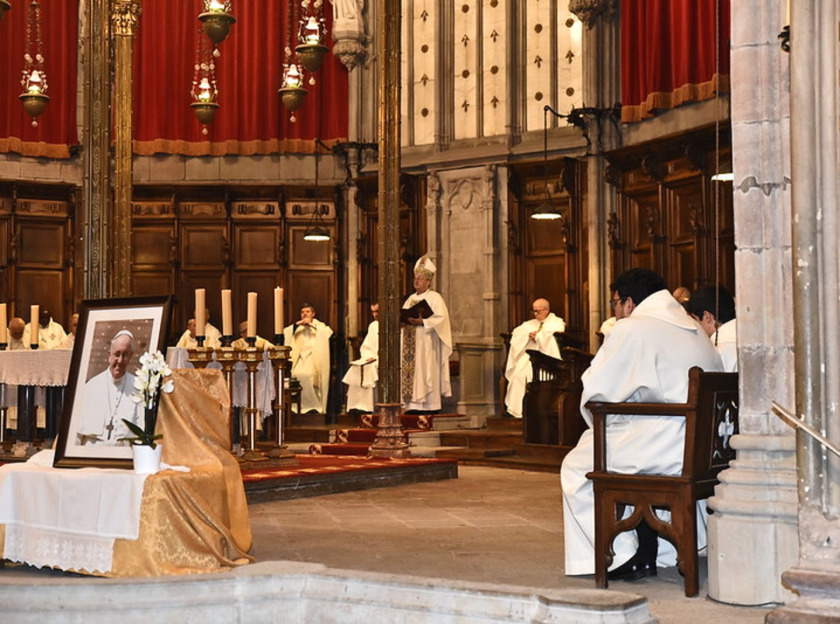 El dia 4 de maig a la tarda va tenir lloc el funeral pel Sant Pare a la catedral de Solsona. La celebració va ser presidida pel bisbe Francesc Conesa, acompanyat per quasi tots els preveres del bisbat i amb molta afluència de fidels. El Sr. bisbe va resumir breument a l’homilia el pontificat del papa Francesc, tot agraint el seu ministeri. I va demanar al Senyor que “il·lumini la ment i el cor dels cardenals, perquè el nou Papa dirigeixi santament i sàviament aquesta nau de l’Església, la nau de Pere”.