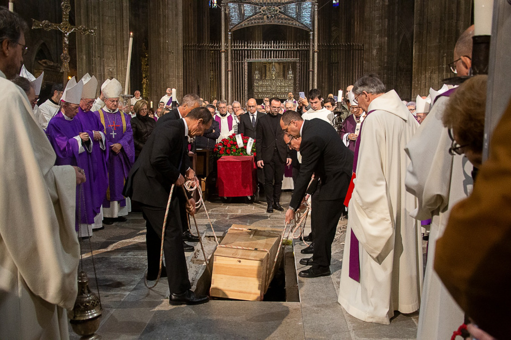 Després de la missa, s’ha donat sepultura al cos del bisbe Carles, al centre de la nau, entre el presbiteri i l’orgue, just al costat de la tomba del bisbe Francesc Pardo, mort el 31 de març de 2022.