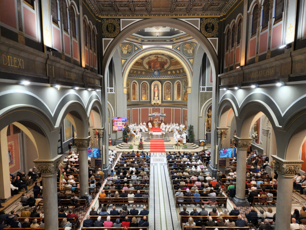 La catedral de Sant Llorenç, plena de gom a gom, en la missa d’acció de gràcies. Foto: Bisbat Sant Feliu