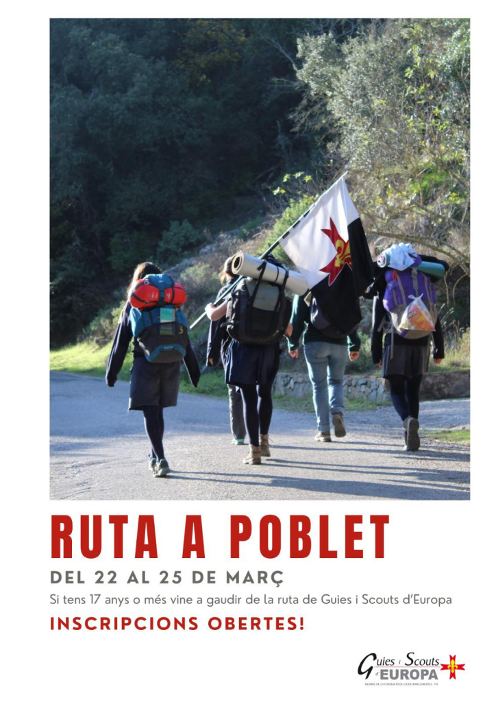 L’associació de lleure de Guies i Scouts d’Europa a Catalunya ha preparat un any més la seva tradicional ruta catalana al monestir de Poblet, que ja arriba a la seva vuitena edició. Es tracta d’una activitat dirigida a joves de 17 anys o més que busca aprofundir en l’espiritualitat cristiana a través del mètode scout i el contacte amb la natura.