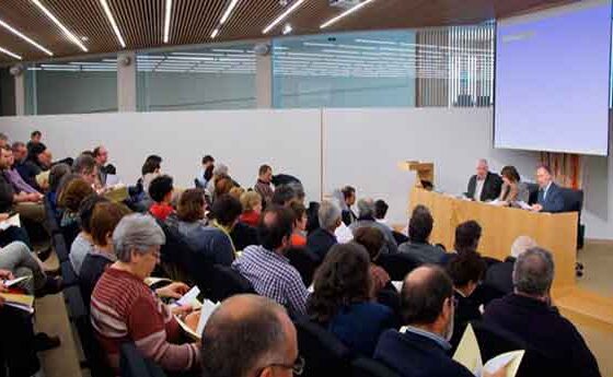 La primera ponència ha estat a càrrec de Cori Casanova, membre del Moviment de Professionals Catòlics de Barcelona, i de Jaume Galobart, delegat de Catecumenat i membre de l’equip d’Apostolat Seglar de la diòcesi de Terrassa. Cori Casanova ha definit la funció dels laics en el Poble de Déu com “ser veu de l’evangeli en el món i ser veu del món en l’Església”. La missió dels laics s’ha de viure en una espiritualitat arrelada en la presència-absència de Déu en el món. Alhora, els laics han de ser portaveus del món a l’interior de la parròquia.