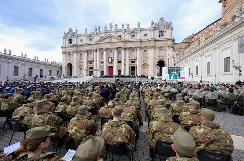 Així ho ha dit el Papa durant la missa jubilar dels membres de les Forces Armades, de Policia i Seguretat a la plaça de Sant Pere aquest diumenge. La litúrgia ha estat celebrada pel prefecte del Dicasteri per als Bisbes, el cardenal Robert Prevost; l’ordinari militar per a Itàlia, Mons. Santo Marcianò, i el president del Consell de Conferències Episcopals d’Europa, Mons. Gintaras Grušas, amb més de tres-cents concelebrants.