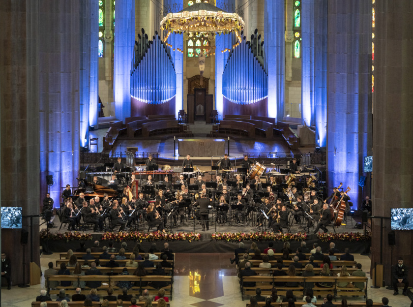 Aquest dissabte 4 de novembre, la Banda Municipal de Barcelona ha ofert per primera vegada en la seva història un concert a la basílica de la Sagrada Família. Amb aquesta actuació, es dona oficialment el tret de sortida a tota la programació d’actes que serviran per celebrar la finalització del conjunt de les torres dels Evangelistes.