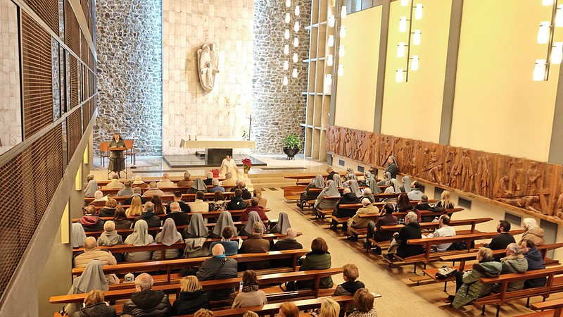 L’acte de benedicció va començar amb unes paraules inicials de les germanes de l’Institut, que van posar en relleu la importància de l’orgue instal·lat dins del temple —d’estil contemporani— de la Sagrada Família, pel seu impacte en la vida social de la ciutat i per la rellevància de la seva factura arquitectònica.