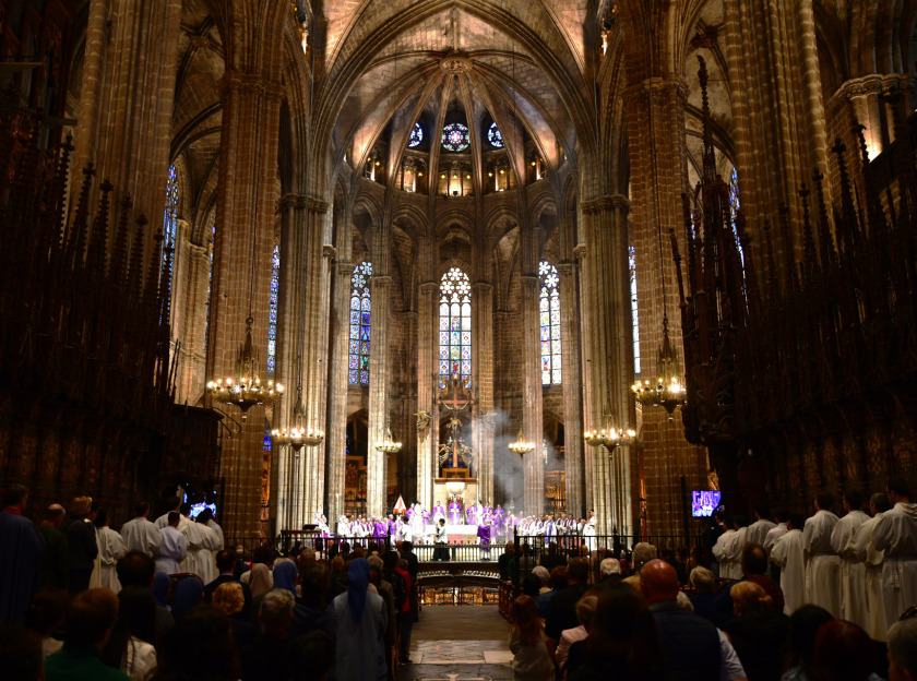 La catedral de Barcelona ha acollit aquest dimarts 29 d’abril el funeral diocesà pel Papa Francesc, presidit pel bisbe Javier Vilanova i concelebrada per l’altre auxiliar David Abadías, així com per bona part dels canonges i un nombrós grup de preveres. El celebrant, assistit pels diaques Josep Vidal i Santi Claret, amb la participació també de molts diaques de l’arxidiòcesi, ha recordat a l’inici de l’Eucaristia la força del que s’havia viscut la setmana anterior a Roma, abans i després de les exèquies per l’ànima del pontífex argentí.