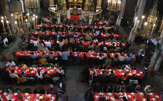 Com cada any, el dia de Nadal la Comunitat de Sant’Egidioorganitza el tradicional dinar de germanor per a les persones que es troben ensituació de pobresa i soledat, com són els refugiats, les famílies ambdificultat, o les persones que no tenen llar. El dinar central tindrà lloc a labasílica dels Sants Màrtirs Just i Pastors, però també se’n faran a d’altres puntsde la ciutat, fent possible que s’acullin més de 1.300 comensals a Barcelona. Altreslocalitats catalanes, com per exemple Tarragona, també se sumaran a aquestainiciativa per fer que el Nadal sigui una festa per a tothom.