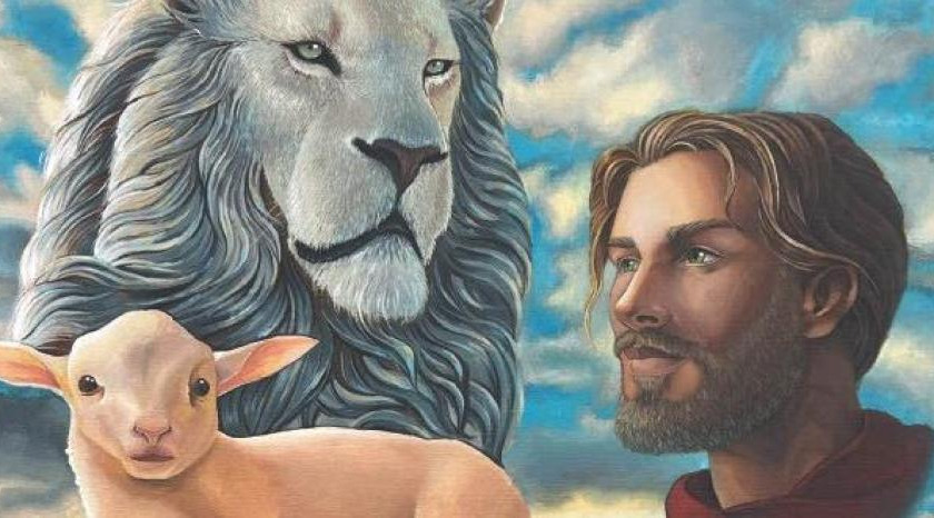Diu Apocalipsis 5,2-5 que ningú, en tot el cel ni en tota la terra, no és digne d’obrir el document clos per set segells, però només l’Anyell immolat que seu a la dreta del Pare, que és el Lleó de la tribu de Judà i el rebrot de David que ha triomfat; podrà obrir els segells i desplegar aquest document. Per aquest motiu apareix un gran lleó al cel amb l’ovella jove a baix a la dreta.