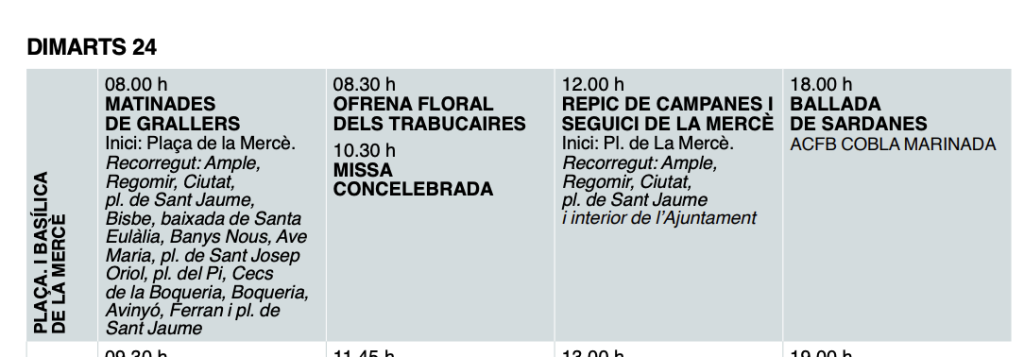 El programa de les festes de la Mercè d’aquest any torna a incloure la missa pontifical. Tot i que ho faci com a “missa concelebrada”, i no doni cap tipus d’informació a part de l’hora de l’inici (10.30 a la basílica de la Mercè el dimarts 24 de setembre), aquesta és la primera vegada que la missa de Festa Major apareix al programa oficial des de l’any 2015.