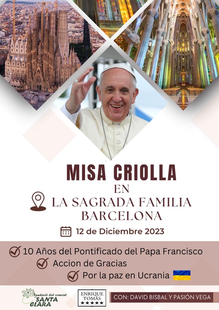 Serà una Missa Criolla, interpretada per David Bisbal i Pasión Vega i que comptarà amb el patrocini de la Fundació Enrique Tomás. La Missa Criolla va ser composta per Ariel Ramírez com un tribut a dues religioses catòliques que van auxiliar els jueus durant l’holocaust. En aquesta ocasió vol ser un tribut a Francesc, Missatger de la Pau. Després de 586 dies des de l’inici de la guerra a Ucraïna, el papa Francesc, que el 13 de març del 2023 complirà deu anys de pontificat, no ha deixat d’alçar la veu i cercar camins de mediació, d’enviar ajuda humanitària i de manifestar la seva proximitat envers el poble d’Ucraïna.