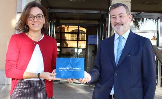 La delegació a Barcelona de Mans Unides ha concedit a la Universitat Abat Oliba CEU la distinció “Universitat Solidària”, que es produeix en el context de la intensa col·laboració entre totes dues institucions.La presidenta delegada de Mans Unides a Barcelona, Mireia Angerri, ha lliurat la placa corresponent al rector de la UAO CEU, Rafael Rodríguez-Ponga.La cooperació entre la universitat i Mans Unides es preveu més estreta de cara al futur. En aquest sentit, es va subscriure al maig d’aquest any un conveni de col·laboració cultural, científica i educativa.En el context d’aquest clima de treball conjunt, s’han posat en marxa algunes activitats, com la participació de Mireia Angerri en un brífing amb estudiants de Publicitat i Relacions Públiques en el marc de la XII edició del Festival de Clipmetratges. Entroncat amb la filosofia d’aquest certamen, Mans Unides Barcelona també ha obert per a la comunitat d’estudiants de la UAO CEU un premi al millor curt solidari.Així mateix, hi ha planificades diverses accions entre Mans Unides Barcelona i la Càtedra UNESCO en Pau, Solidaritat i Diàleg Intercultural de la UAO CEU. La primera d’elles s’emmarcarà en el context del Dia dels Drets Humans, que se celebra el 10 de desembre.La divulgació de la idea dels drets humans des de l’òptica dels diversos plans de la realitat en què aquests s’expressen és una inquietud que comparteixen Mans Unides i la Càtedra UNESCO de la UAO CEU. En aquest punt, són destacables els continguts audiovisuals que Mans Unides ha elaborat sobre aquestes cinc temàtiques: drets humans, alimentació, salut, educació i perspectives transversals sobre la dona.