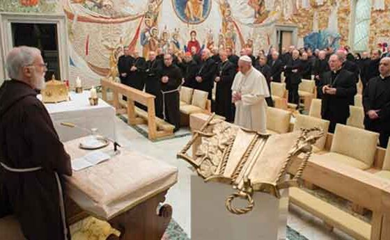 El Papa ha participat aquest divendres en la primera meditació d’Advent, en què el predicador Raniero Cantalamessa ha fet una reflexió sobre l’Esperit Sant i sobre les reformes que ha suscitat en l’Església dels últims 50 anys, després del Concili Vaticà II, un missatge molt necessari per interioritzar la missió del Sant Pare avui en el món. La predicació del caputxí Raniero Cantalamessa s’ha fet a la capella Redemptoris Mater del Palau Apostòlic. Com cada any, escolten aquestes predicacions els Cardenals, arquebisbes i bisbes de la Cúria romana, al costat dels secretaris de les congregacions, els prelats i el Vicariat de Roma, així com els superiors generals i els procuradors dels Ordes Religiosos que formen part de la Capella Pontifícia.