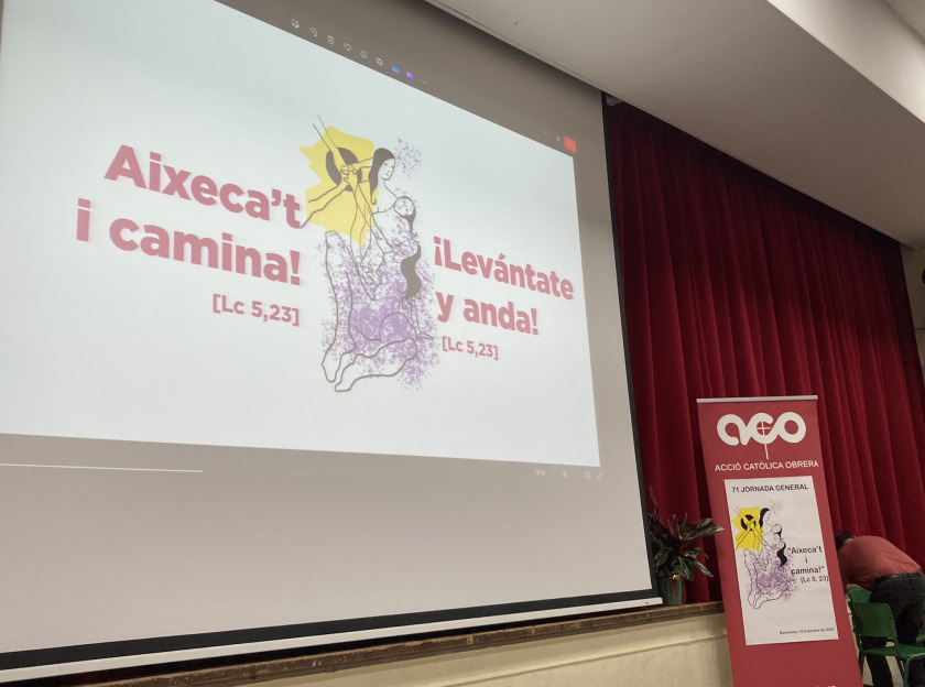 “Aixeca’t i camina!” (Lc 5,23), les paraules de Jesús dirigides al paralític han estat el fil conductor d’una Jornada General de l’ACO, la 71a, que el moviment de Pastoral Obrera ha celebrat, el 12 d’octubre festivitat del Pilar, i que marca l’inici de curs. La convocatòria ha reunit prop de 300 militants, amics i simpatitzants en el decurs del dia als Salesians Rocafort, de Barcelona.
