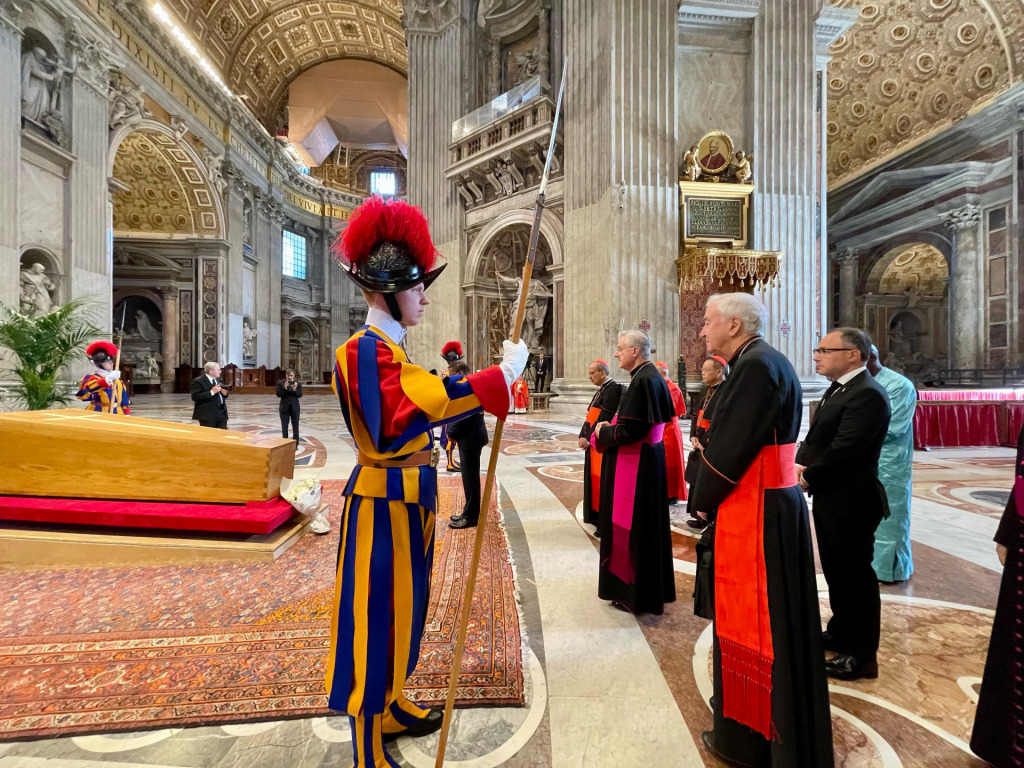 Abans de les 10 del matí, com les altres delegacions institucionals dels països assistents, el Copríncep i el Cap de Govern han pogut fer un moment de pregària davant del fèretre del Sant Pare Francesc. Més tard, s’han desplaçat fins a la plaça de Sant Pere per assistir a les exèquies, com també ho ha fet Mons. Serrano -ja situat en l’espai reservat pels bisbes del món assistents- seguint el ritual establert per la Santa Seu per a la mort d’un pontífex – L’Ordo Exequiarum Romani Pontificis-.